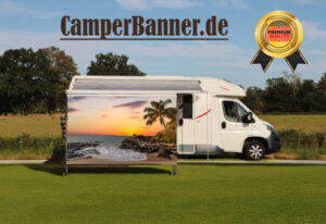Kurzzusammenfassung: Ein Markisenbanner am Wohnmobil sorgt für Sichtschutz, angenehmes Klima und individuelleres Camping. Hier erfahren Sie alles zu Materialien, Größen, Befestigung, Design und Montage –